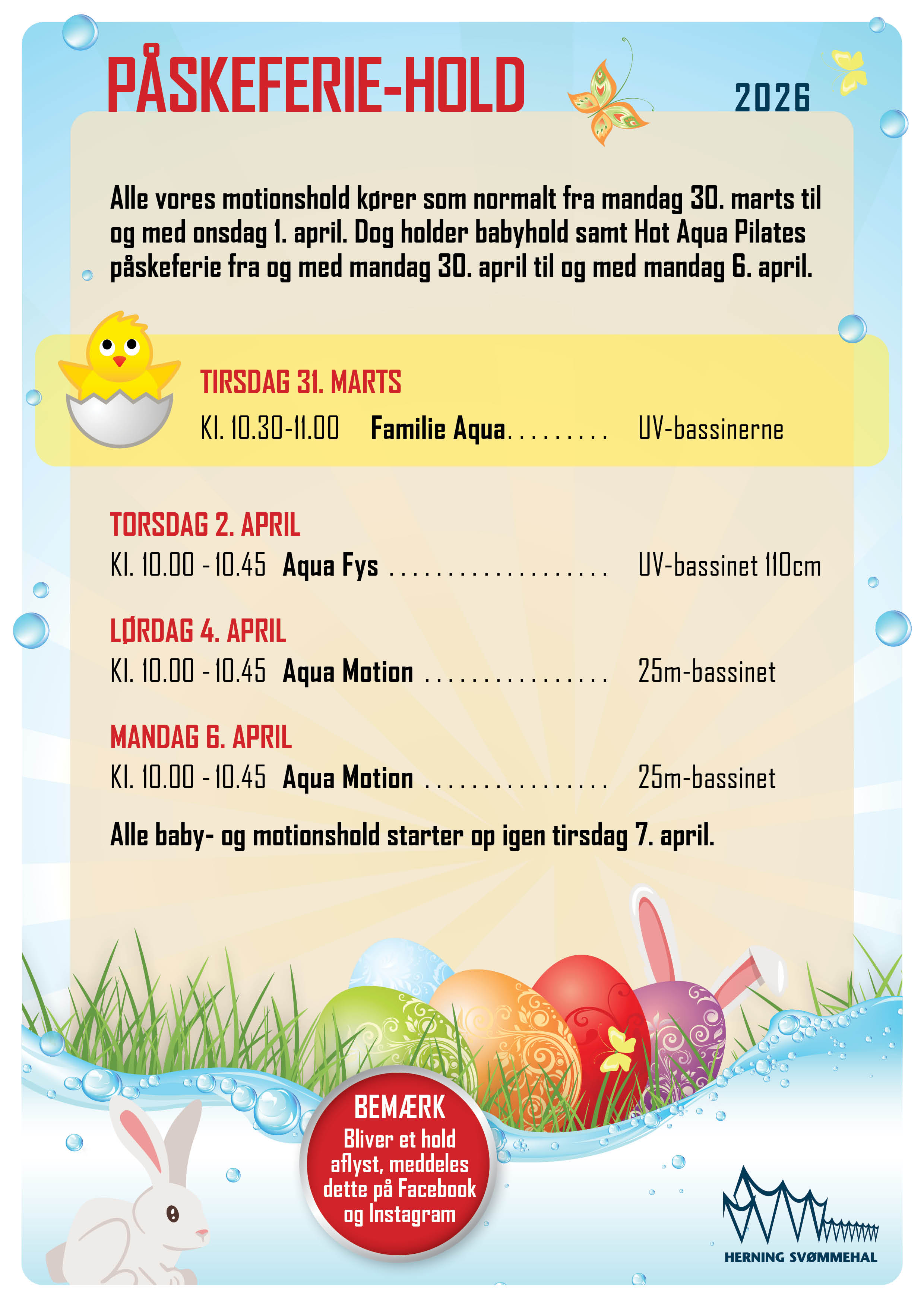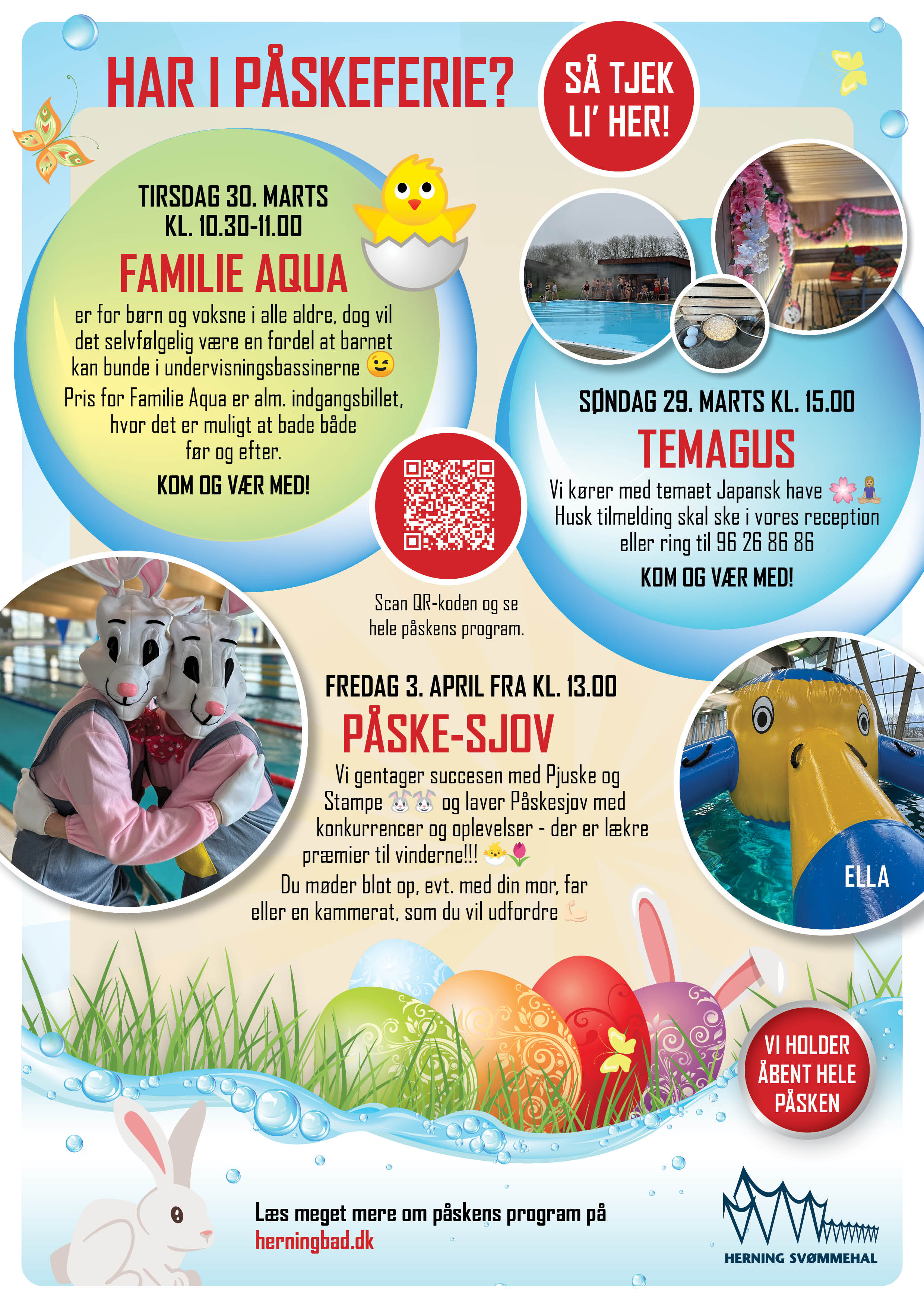 Det er snart påske - og der kommer selvfølgelig til at ske en masse i Herning Svømmehal - både for børn og voksne ☺️