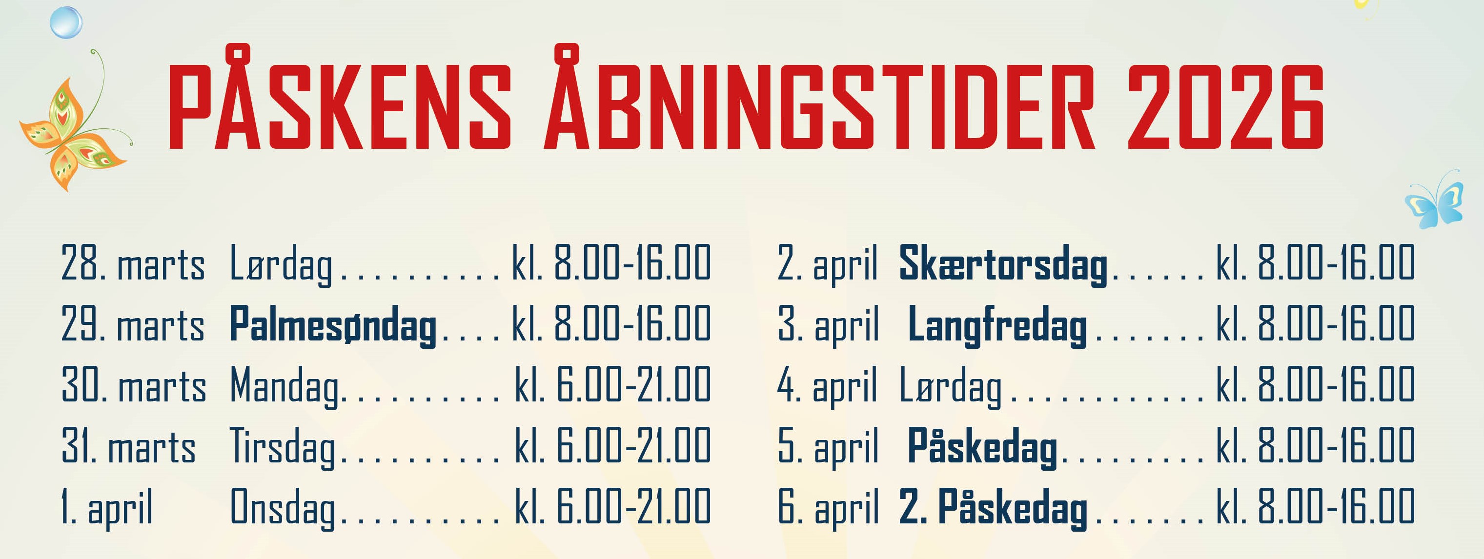 Vi holder åbent i alle påskedagene - tjek påskens åbningstider herunder 👇🏼