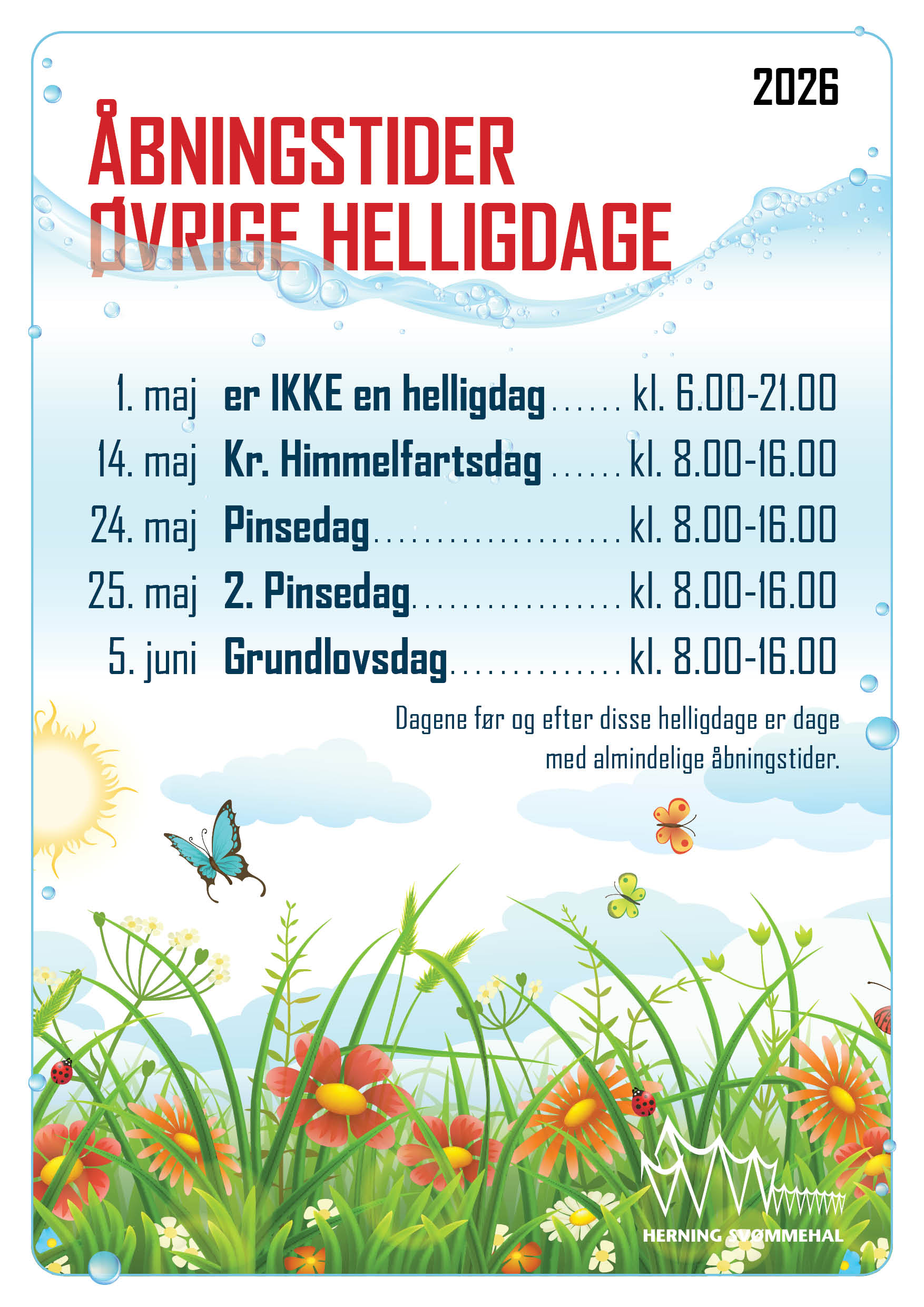 Vidste du, at det faktisk kun er én dag om året, Herning Svømmehal holder lukket? Det er hver 1. januar. Resten af året kan du og familien besøge vores fantastiske hus og benytte dig af alle vores mange tilbud og faciliteter.